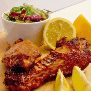 Asas de peru assadas no forno c/ arroz chau-chau