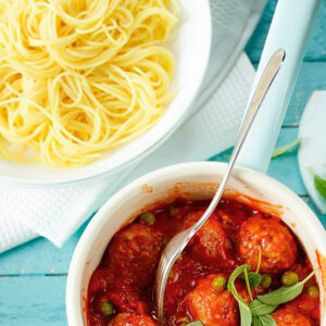 Almôndegas de frango c/ esparguete integral