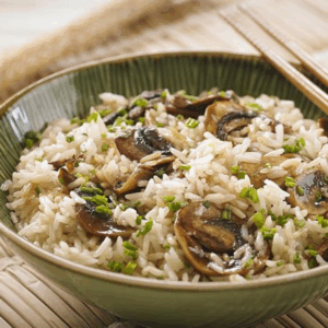 Arroz oriental c/ legumes e cogumelos frescos